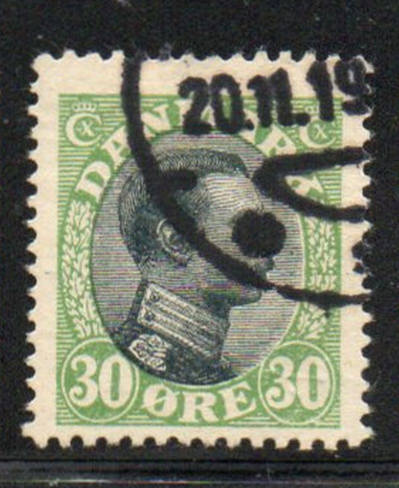Denmark Scott Catalogue number 111 1918 30 ore green & black Christian X stamp .