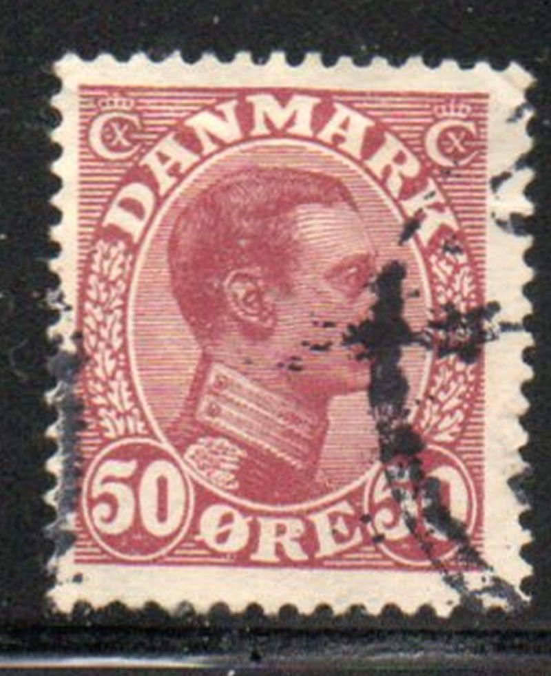 Denmark Scott Catalogue number 120 1913 50 ore cllaret Christian X stamp .Used, fine .Canadian Customers - I pay the GST/HST for youMember Canadian Stamp Dealers Association .Free shipping on orders over $50 going to Canada and the USA .24-6-25.jpg
