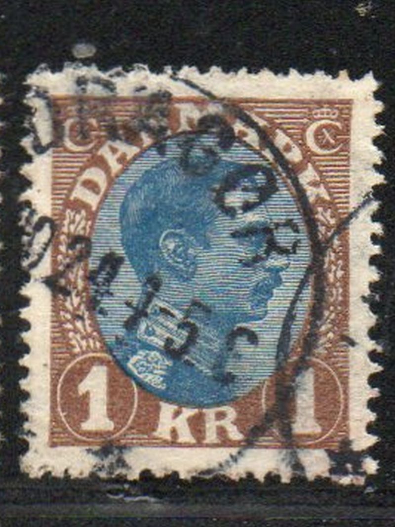 Denmark Scott Catalogue number 128 1922 1 kr brown & blue Christian X stamp .