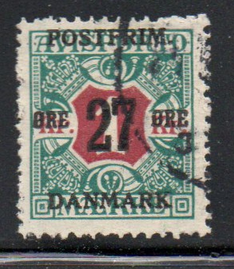 Denmark Scott Catalogue number 154 918 27 ore overprint on 1 Kr Newspaper stamp .