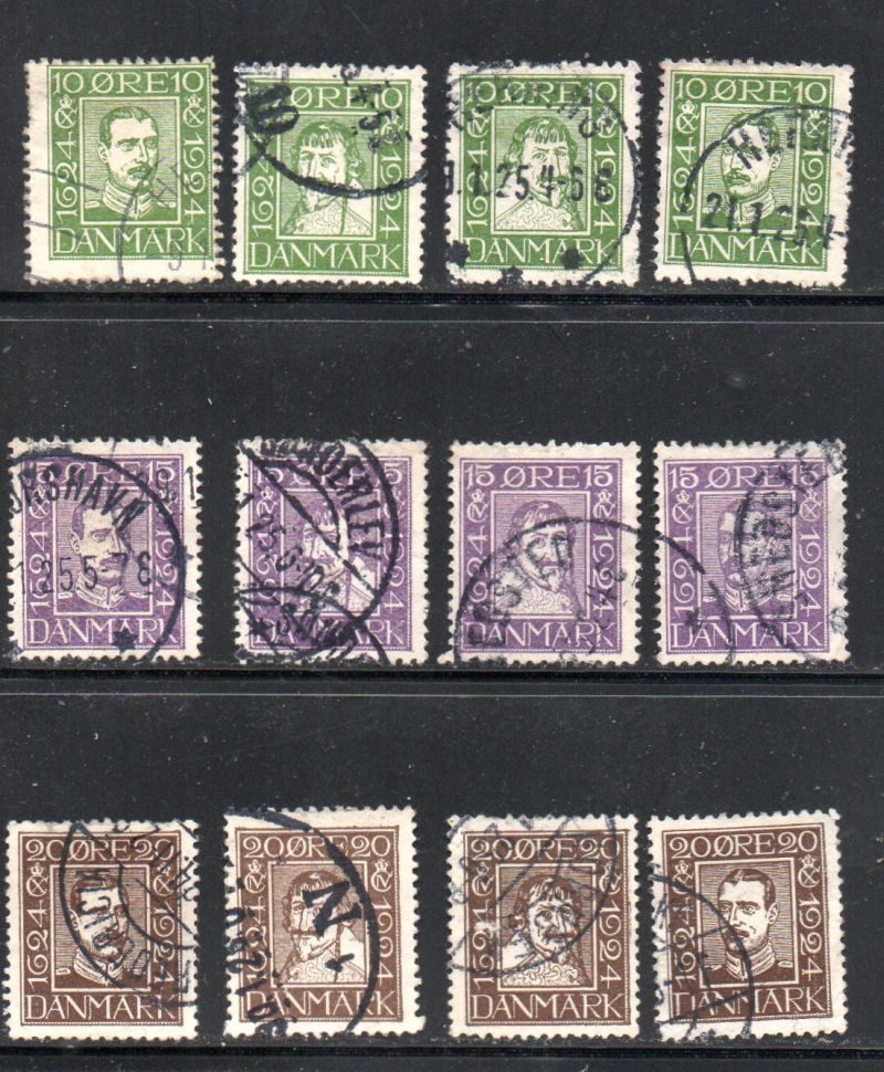 Denmark Scott Catalogue number 164-175 1925 300th Anniversary Danish Postal Service, Christian IV & Christian X, stamp set .Used,  fine to very fineCanadian Customers - I pay the GST/HST for youMember Canadian Stamp Dealers Association .25-5-6.jpg