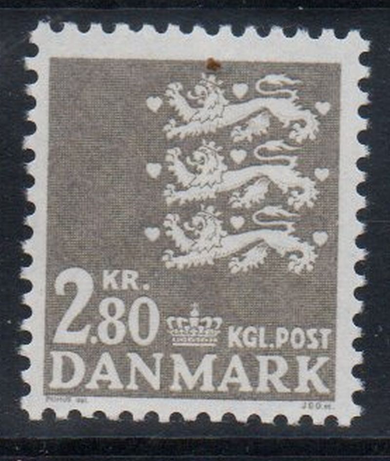 Denmark Scott Catalogue number 443 1967 443 1967 2.8 kr gray 3 lions stamp .Mint, fine to very fine, original gum hinged .Member Canadian Stamp Dealers Association .Canadian Customers - I pay the GST/HST on your purchases from me .