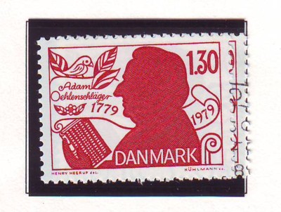Denmark Scott Catalogue number 659 1979 Oehlenschlager stamp .Mint, fine to very fine, original gum never hinged .Member Canadian Stamp Dealers AssociationCanadian Customers - I pay the GST/HST for you