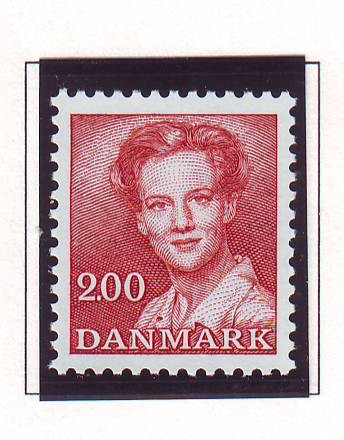 Denmark Scott Catalogue number 703 1982 2.0 kr dull red Queen Margrethe stamp .Mint, fine to very fine, original gum never hinged.Canadian Customers - I pay the GST/HST for youMember Canadian Stamp Dealers Association .