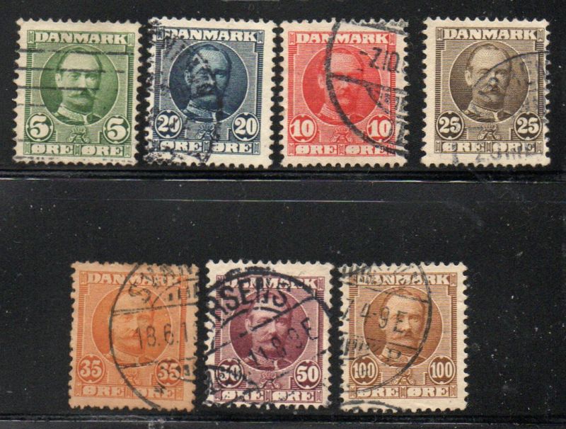 Denmark Scott Catalogue number 72-78 1907-1912 Frederik VIIIstamp set.