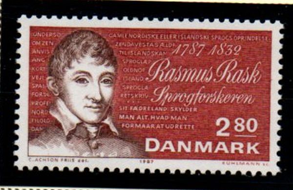 Denmark Scott Catalogue number 845 1987 Rasmus Rusk stamp .