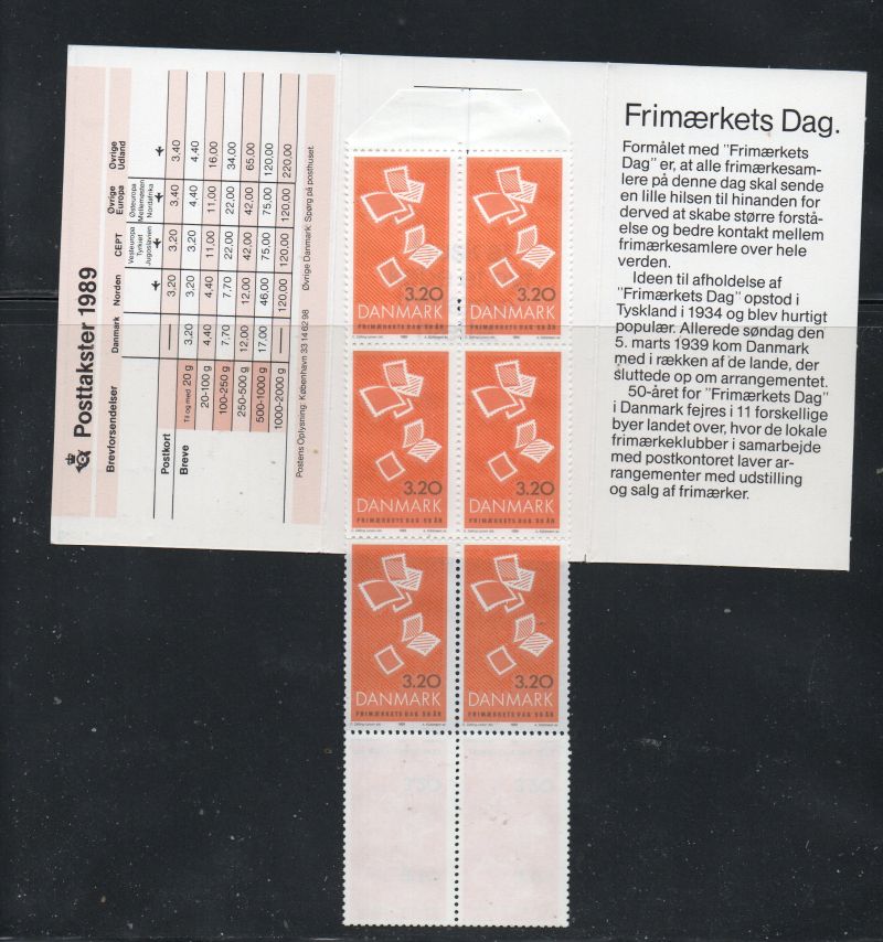 Denmark Scott Catalogue number 880 1989  Stamp Day stamp booklet .Mint, fine to very fine, original gum never hinged.Member Canadian Stamp Dealers Association .Free Shipping on purchases over $50 going to Canada or the USA .Canadian Customers - I pay the GST/HST on your purchases from me .