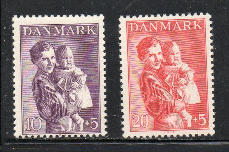 Denmark Scott Catalogue number B12-B13 1941 Children's Charity Fund stamp set .Mint, fine to very fine, original gum never hinged . Member Canadian Stamp Dealers Association . Canadian Customers - I pay the GST/HST on your purchases from me .