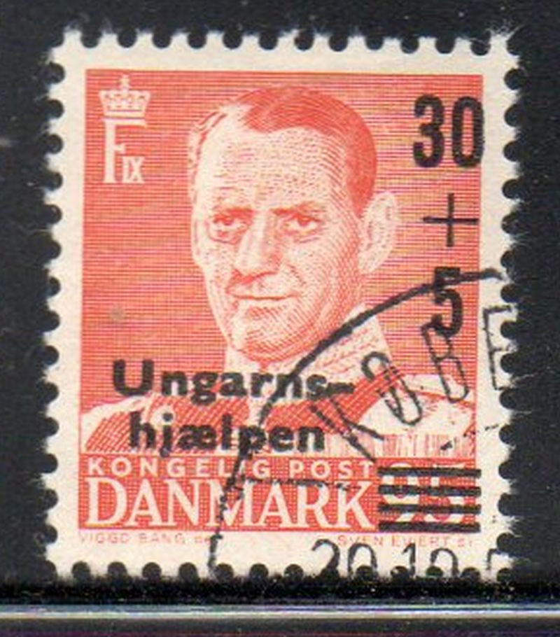 Denmark Scott Catalogue number B24 1957 Hungarian Refugees stamp .Used, fine to very fine . .Member Canadian Stamp Dealers Association .Canadian Customers - I pay the GST/HST on your purchases from me .