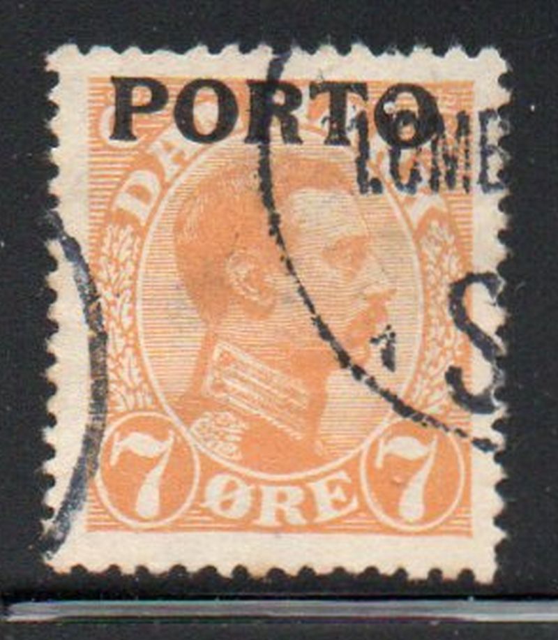 Denmark Scott Catalogue number J3 1921 7 ore Christian X overprinted PORTO postage due stamp .