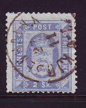 Denmark Scott Catalogue number O1 1871 2 s blue Official stamp .Used, very good .Member Canadian Stamp Dealers Association .Canadian Customers - I pay the GST/HST on your purchases from me .8-7-179.jpg