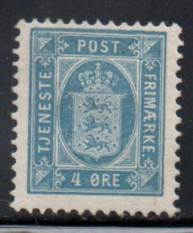 Denmark Scott Catalogue number O9B 1899 4 ore blue Official stamp .Mint, fine , original gum hinged .Member Canadian Stamp Dealers Association .Canadian Customers - I pay the GST/HST on your purchases from me .25-9-2.jpg