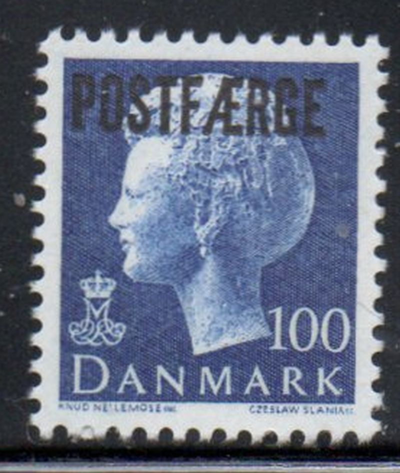 Denmark Scott Catalogue number Q49 1976 40 roe Queen with "POSTFAERGE" overprint for Ferry parcel stamp use .