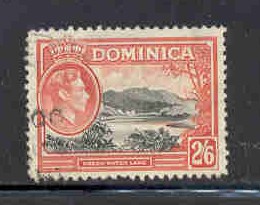 Dominica Scott Catalogue number108 1938 2 shilling 6 d George VI & Lake stamp .