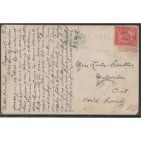 A early Valentine & Sons colour postcard showing City Hall and Union Bank Building, Winnipeg, used in Edward VII era to Milverton Ontario but no date showing on any of the postmarks, one possible part RPO cancel at bottom right. Bit of edge wear.