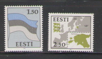 Estonia Scott Catalogue number 209-210 1991 Flag & Map stamp set .Mint, fine to very fine original gum never hinged .Member Canadian Stamp Dealers Association .Canadian Customers - I pay the GST/HST on your purchases from me .