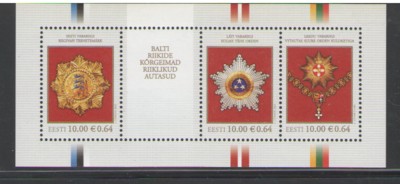 Estonia Scott Catalogue number593 2008 Baltic State Awards stamp souvenir sheet.