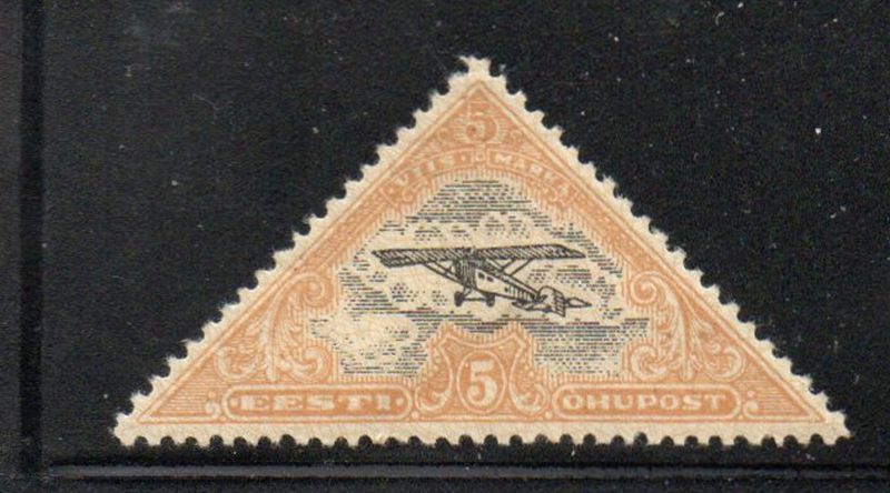 Estonia Scott Catalogue number C15 1925 5 m monoplane airmail stamp .Mint, fine to very fine original gum hinged .Member Canadian Stamp Dealers AssociationCanadian Customers - I pay the GST/HST on your purchases from me .25-2-34.jpg