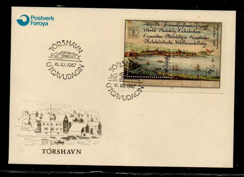Faroe Islands Scott Catalogue number 168 1987 HAFNIA 87 Philatelic Exhibition stamp souvenir sheet .