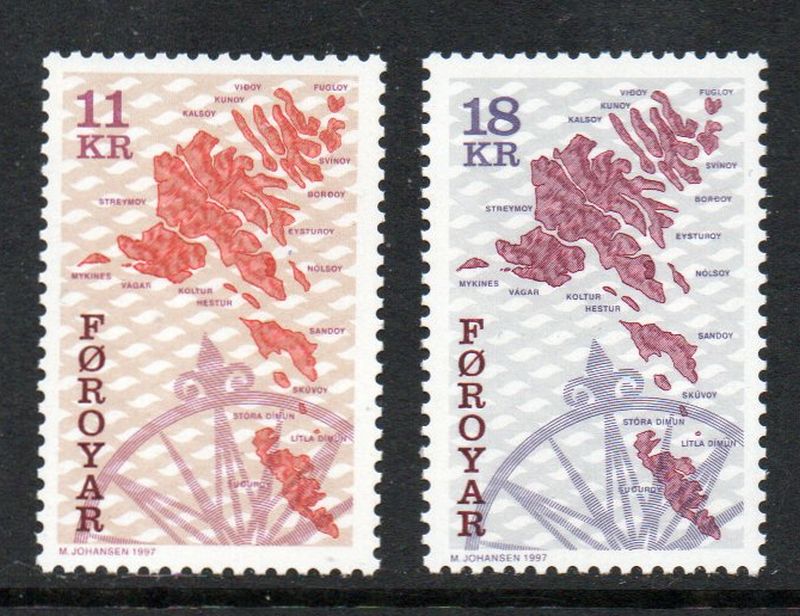 Faroe Islands Scott 319-320 1996 Maps stamp set .Mint, fine to very fine original gum never hinged .Member Canadian Stamp Dealers Association .