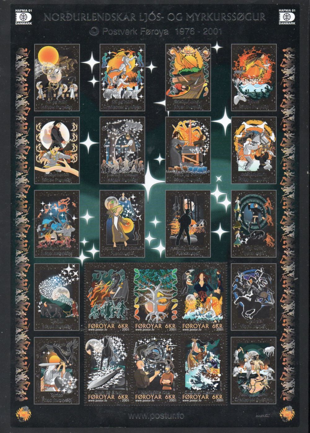 Faroe Islands Scott Catalogue number 396 2001 Nordic Myths & Legends stamp souvenir sheet.Mint, fine to very fine original gum never hinged .Member Canadian Stamp Dealers Association .Canadian Customers - I pay the GST/HST on your purchases from me .