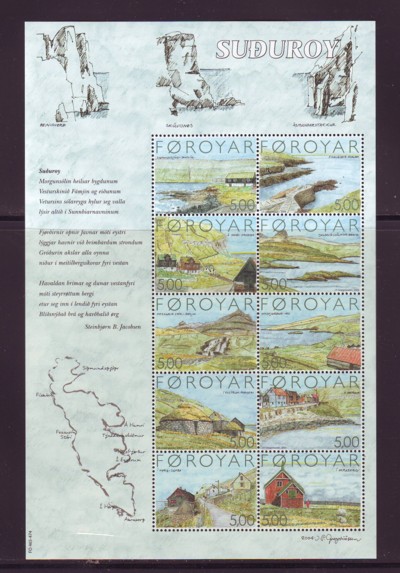 Faroe Islands Scott Catalogue number 441 2004 Suduroy stamp souvenir sheet.Mint, fine to very fine original gum never hinged .Member Canadian Stamp Dealers Association .Canadian Customers - I pay the GST/HST on your purchases from me .