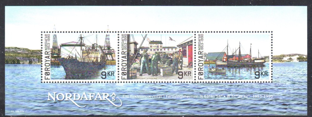 Faroe Islands Scott 609 2013 Nordafar Fishery, Greenland, stamp souvenir sheet Mint, fine to very fine original gum never hinged .Member Canadian Stamp Dealers Association .
