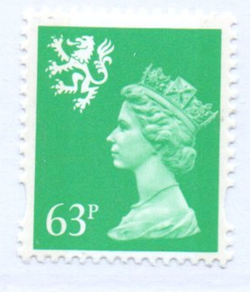 Great Britain Scotland Scott Catalogue number SMH97 1997 63p bright green QE II Machin Head stamp .Mint, fine to very fine, original gum never hinged .Canadian Customers - I pay the GST/HST on your purchases from me .