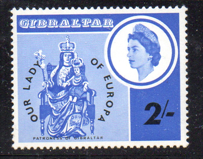 Gibraltar Scott Catalogue number 182 1966  Our Lady of Europa stamp .Mint, fine to very fine, original gum never hinged .Member Canadian Stamp Dealers Association .Canadian Customers - I pay the GST/HST on your purchases from me .