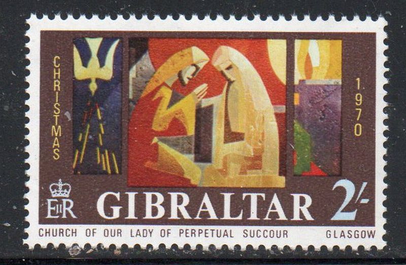 Gibraltar Scott Catalogue number 240 1970 Christmas stamp . Mint, fine to very fine, original gum never hinged .Member Canadian Stamp Dealers Association .Canadian Customers - I pay the GST/HST on your purchases from me .