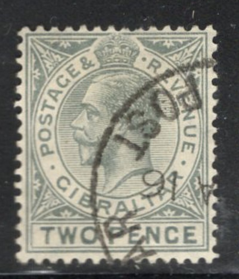 Gibraltar Scott Catalogue number 68 1912 2d gray George V stamp.Used, very good to fine.Canadian Customers - no added GST/HSTUS customers - No tariffs on stamps sent by meMember Canadian Stamp Dealers Association.br26-4-14.jpg