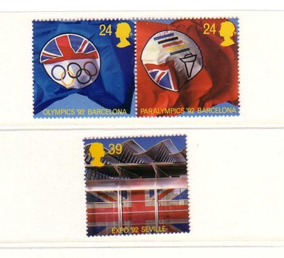 Great Britain Scott Catalogue number 14451-1453 1992 1992 Olympics & Barcelona Expo stamp setMint, fine to very fine, original gum never hinged .Canadian Customers - I pay the GST/HST for youMember Canadian Stamp Dealers Association