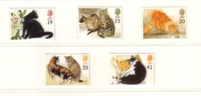 Great Britain Scott Catalogue number 1586-1590 1995 cats stamp set.Mnt, fine to very fine original gum never hinged .Canadian Customers - I pay the GST/HST for youMember Canadian Stamp Dealers Association
