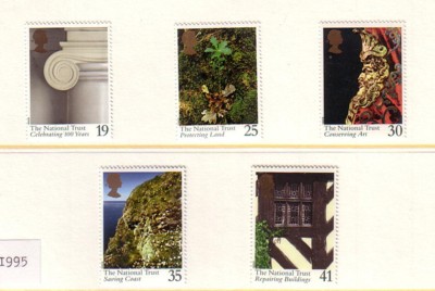 Great Britain Scott Catalogue number 1606-1610 1995 100th Anniversary National Trust stamp set.Mint, fine to very fine original gum never hinged .Canadian Customers - I pay the GST/HST for youMember Canadian Stamp Dealers Association