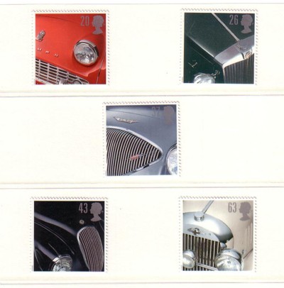 Great Britain Scott Catalogue number 1703-1707 1996 Classic British Sports Cars stamp set Mint, fine to very fine original gum never hinged .Canadian Customers - I pay the GST/HST for youMember Canadian Stamp Dealers Association