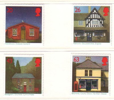 Great Britain Scott Catalogue number 1767-1770 1997 Post Office Building stamp set.Mint, fine to very fine, original gum never hinged.Canadian Customers - I pay the GST/HST on your purchases from meMember Canadian Stamp Dealers Association