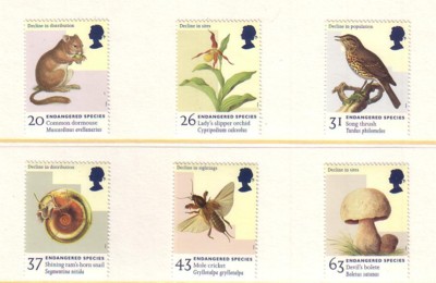 Great Britain Scott Catalogue number 1785-1790 1998 Endangered Species stamp set.Mint, fine to very fine, original gum never hinged.Canadian Customers - I pay the GST/HST on your purchases from meMember Canadian Stamp Dealers Association