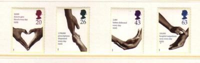 Great Britain Scott Catalogue number  1814-1817  1998 50th Anniversary National Health Service stamp set.Mint, fine to very fine, original gum never hinged.Canadian Customers - I pay the GST/HST on your purchases from meMember Canadian Stamp Dealers Association