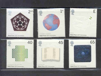 Great Britain Scott Catalogue number 1993-1997 2001 Nobel Prize Winners stamp set .Mint, fine to very fine original gum never hinged .Canadian Customers - I pay the GST/HST for youMember Canadian Stamp Dealers Association