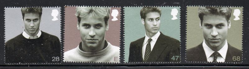 Great Britain Scott Catalogue number 2137-2140 2003 Birthday of Prince William stamp set .Mint, fine to very fine original gum never hinged .Canadian Customers - I pay the GST/HST for youMember Canadian Stamp Dealers Association