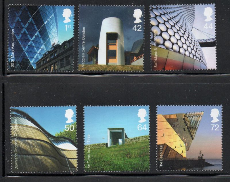Great Britain Scott Catalogue number 2378-2383 2006 Modern Arxhitecture stamp set .Mint, fine to very fine original gum never hinged .Canadian Customers - I pay the GST/HST for youMember Canadian Stamp Dealers Association