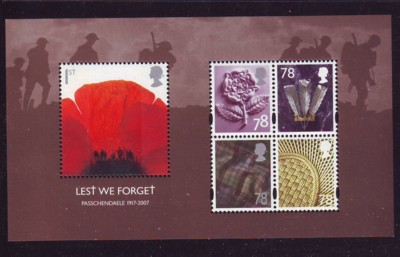 Great Britain Scott Catalogue number 2530a 2007 90th Anniversary Battle of Passchendaele stamp souvenir sheet.Mnt, fine to very fine original gum never hinged .Canadian Customers - I pay the GST/HST for you