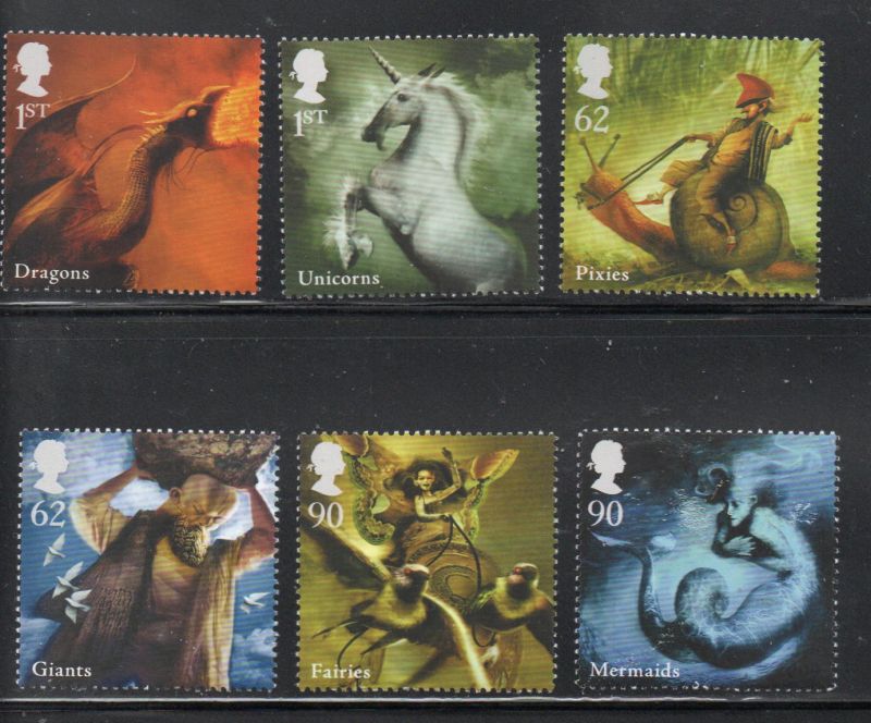 Great Britain Scott Catalogue number 2673-2678 2009 Mythical Creatures stamp set .Mint, fine to very fine original gum never hinged .Canadian Customers - I pay the GST/HST for youMember Canadian Stamp Dealers Association