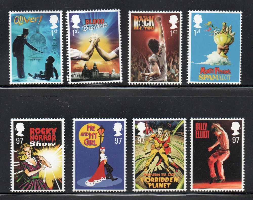 Great Britain Scott Catalogue number 2867-2874 2011 Musicals stamp set.Mint, fine to very fine original gum never hinged .Canadian Customers - I pay the GST/HST for youMember Canadian Stamp Dealers Association