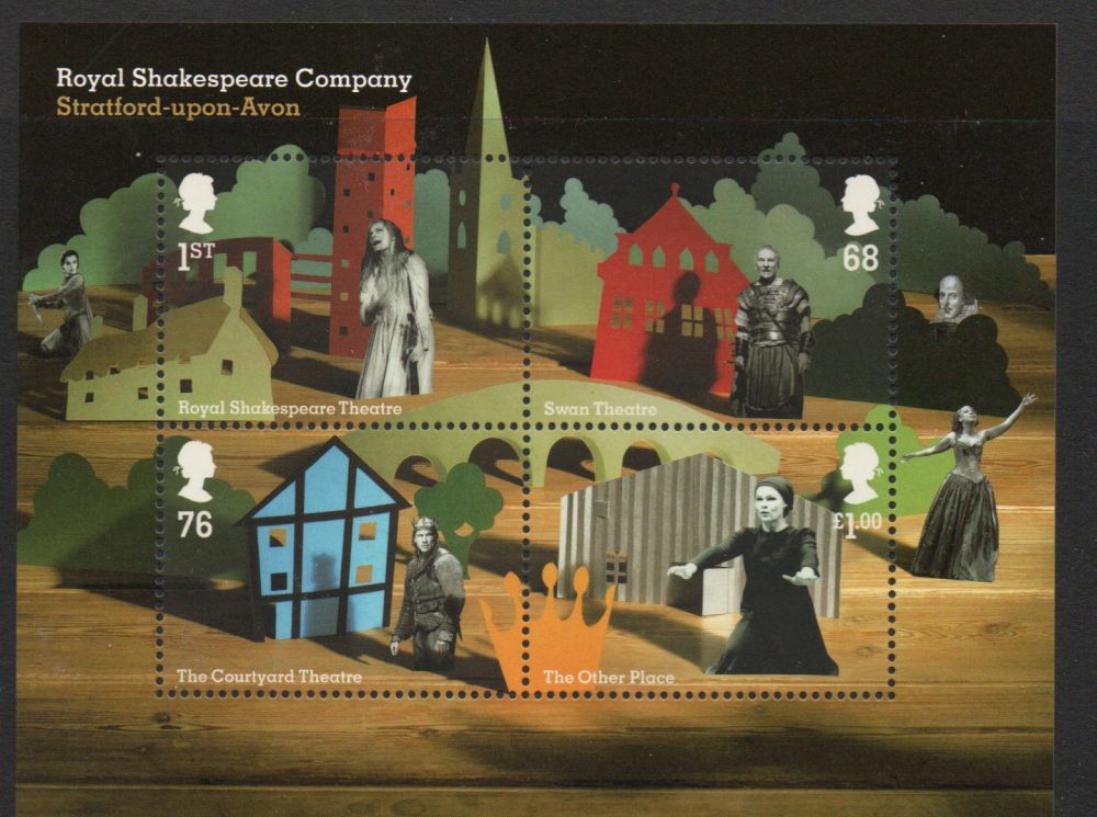 Great Britain Scott Catalogue number 2900  2011 50th Anniversary Royal Shakespeare Company, Stratford-on-Avon, stamp souvenir sheet.Mint, fine to very fine original gum never hinged .Canadian Customers - I pay the GST/HST for youMember Canadian Stamp Dealers Association