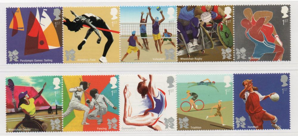 Great Britain Scott Catalogue number 2916-2925 2011 Olympic Sports for 2012 Olympics stamp set.Mint, fine to very fine original gum never hinged .Canadian Customers - I pay the GST/HST for youMember Canadian Stamp Dealers Association