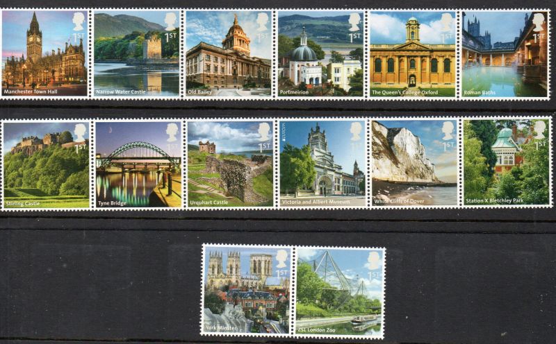 Great Britain Scott Catalogue number 2959-2972 2012 British Landmarks stamp set.