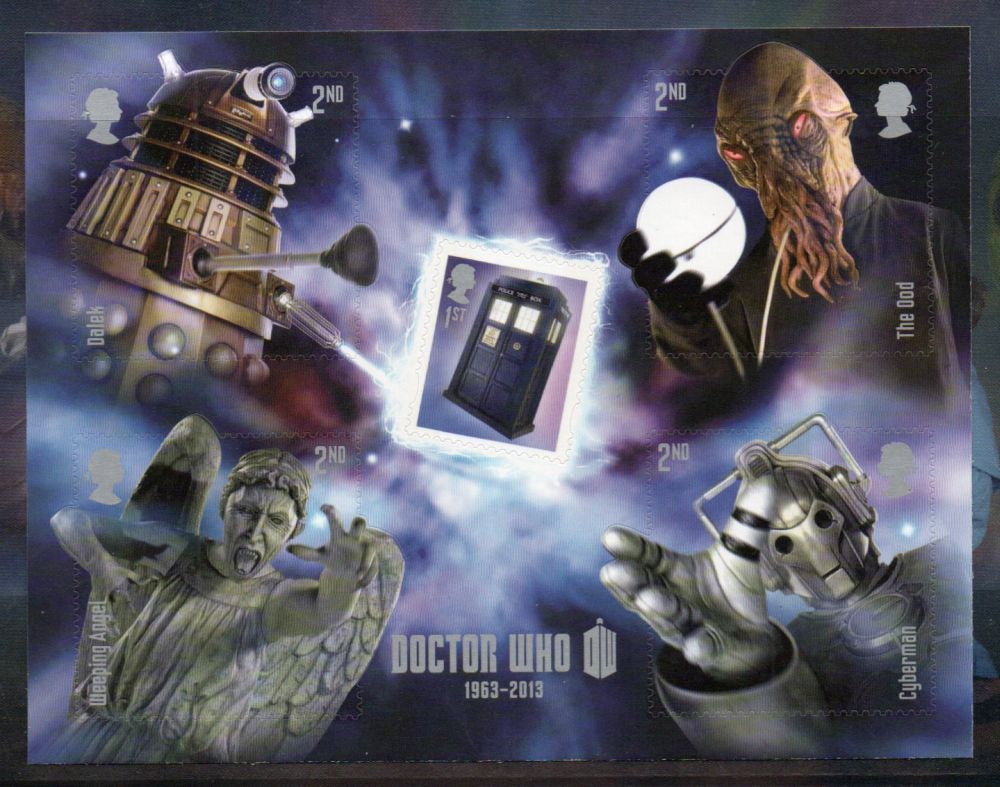 Great Britain Scott Catalogue number 3153 2013 Dr Who stamp souvenir sheet.Mint, fine to very fine original gum never hinged .Canadian Customers - I pay the GST/HST for youMember Canadian Stamp Dealers Association