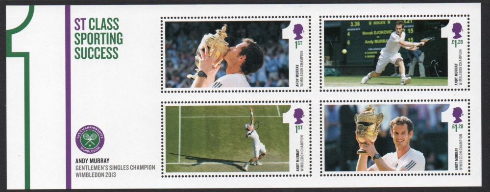 Great Britain Scott Catalogue number 3211 2013 Andy Murray Wimbledon stamp souvenir sheet .Mint, fine to very fine original gum never hinged .Canadian Customers - I pay the GST/HST for youMember Canadian Stamp Dealers Association