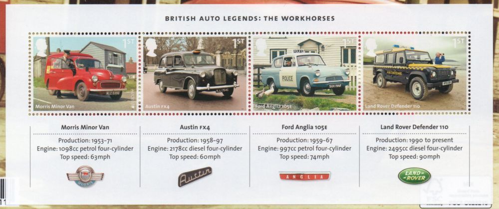 Great Britain Scott Catalogue number 3218 2013 Motor Vehicles stamp souvenir sheet .Mint, fine to very fine original gum never hinged .Canadian Customers - I pay the GST/HST for youMember Canadian Stamp Dealers Association